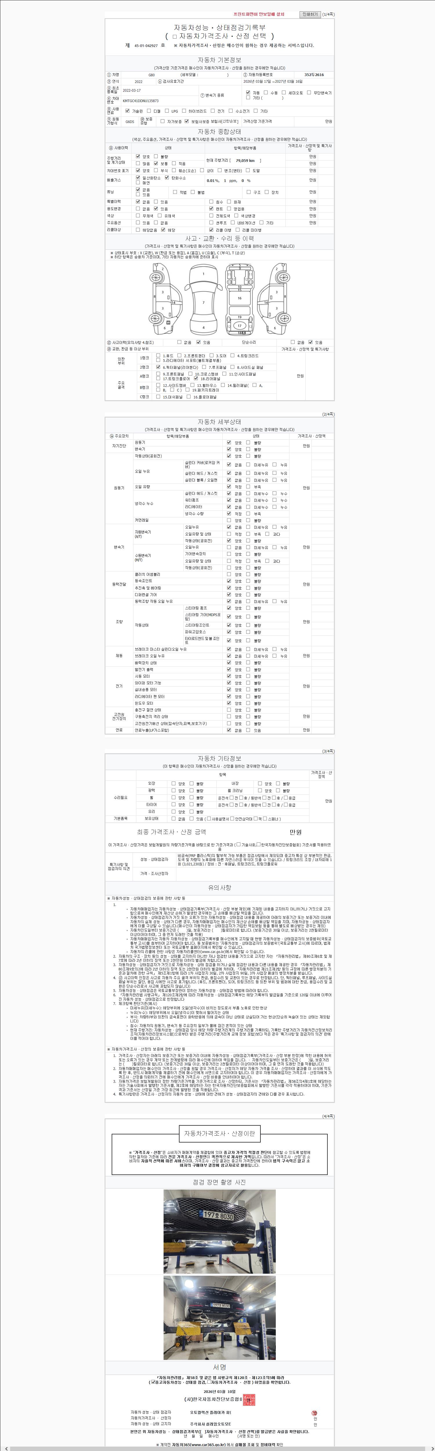 2. 차량 등록증이나 성능점검지 등을 상담자에게 요청및 확인하시고 사전에 미리 점검 하시기를 권유드립니다.