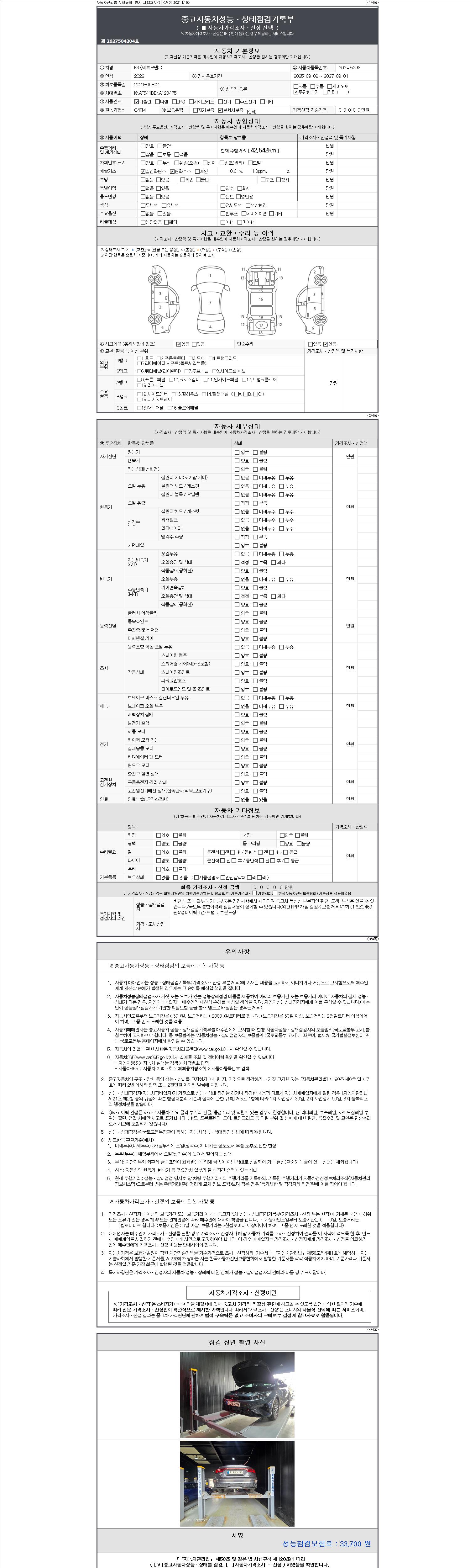 2. 차량 등록증이나 성능점검지 등을 상담자에게 요청및 확인하시고 사전에 미리 점검 하시기를 권유드립니다.