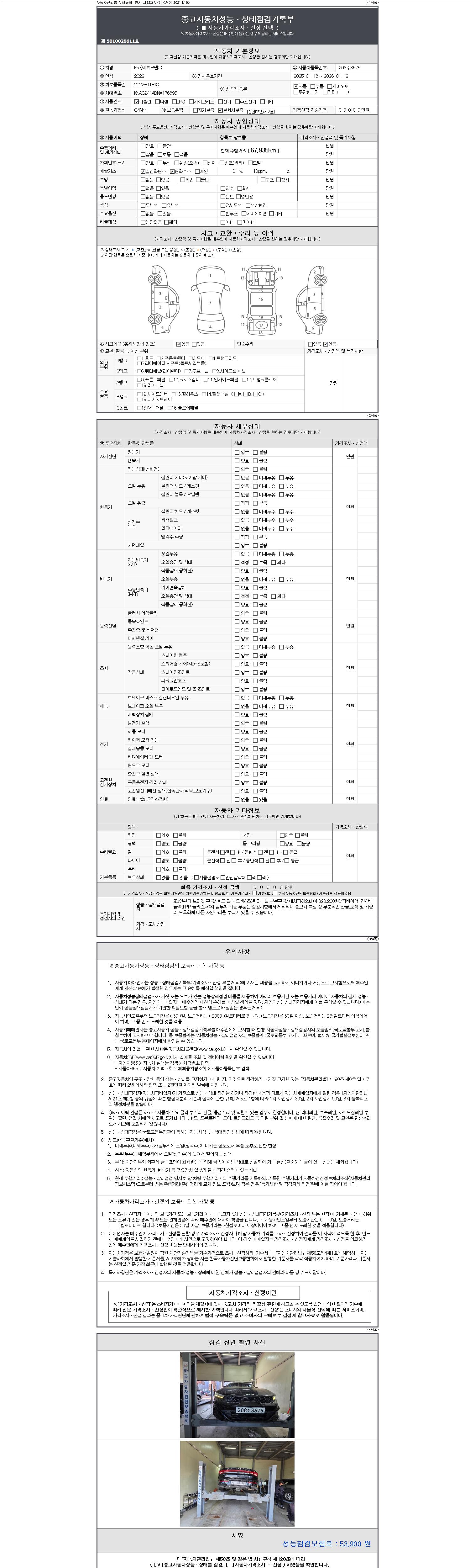 -중고자동차 매매업자를 통해 차량을 구입하실 경우 반드시 "중고자동차 성능, 상태점검 기록부"를 교뷰 받으셔야 하며, 매매업자는 반드시 의무 교부 하여야 압니다.