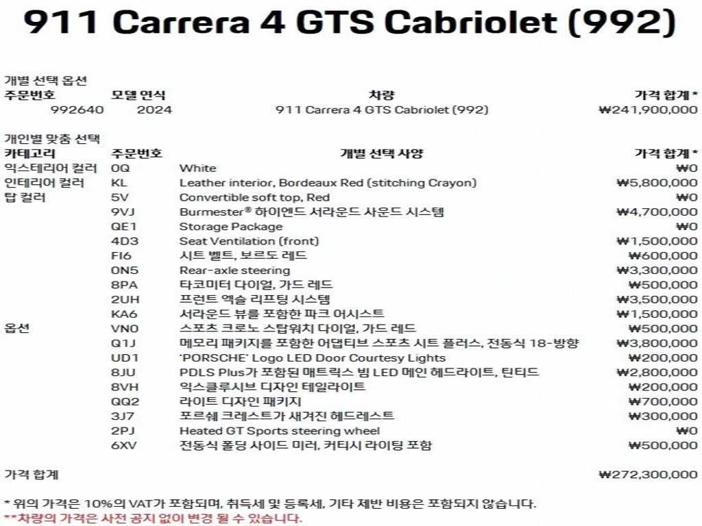 포르쉐 911 911(992) (19년~) 카레라 4 GTS 카브리올레 |