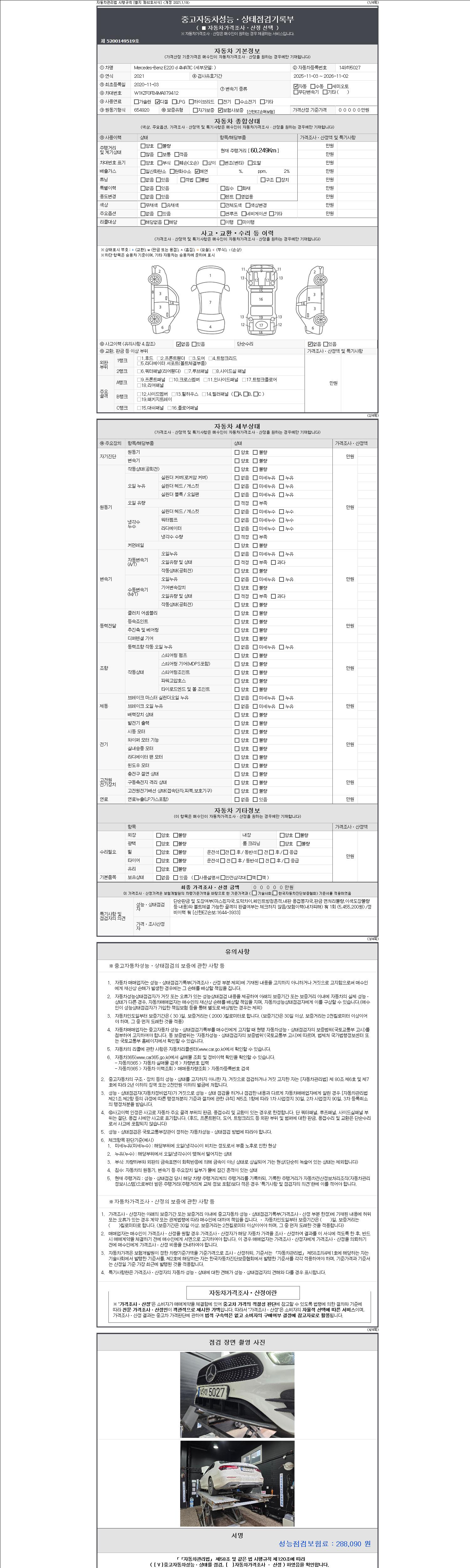 -중고자동차 매매업자를 통해 차량을 구입하실 경우 반드시 "중고자동차 성능, 상태점검 기록부"를 교뷰 받으셔야 하며, 매매업자는 반드시 의무 교부 하여야 압니다.