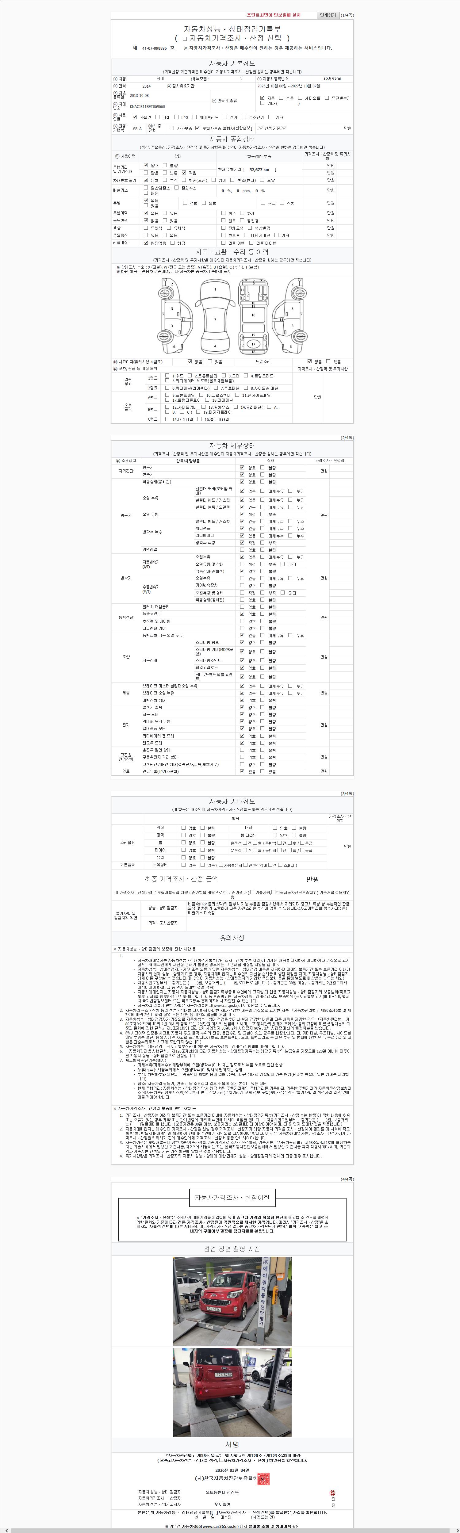 2. 차량 등록증이나 성능점검지 등을 상담자에게 요청및 확인하시고 사전에 미리 점검 하시기를 권유드립니다.