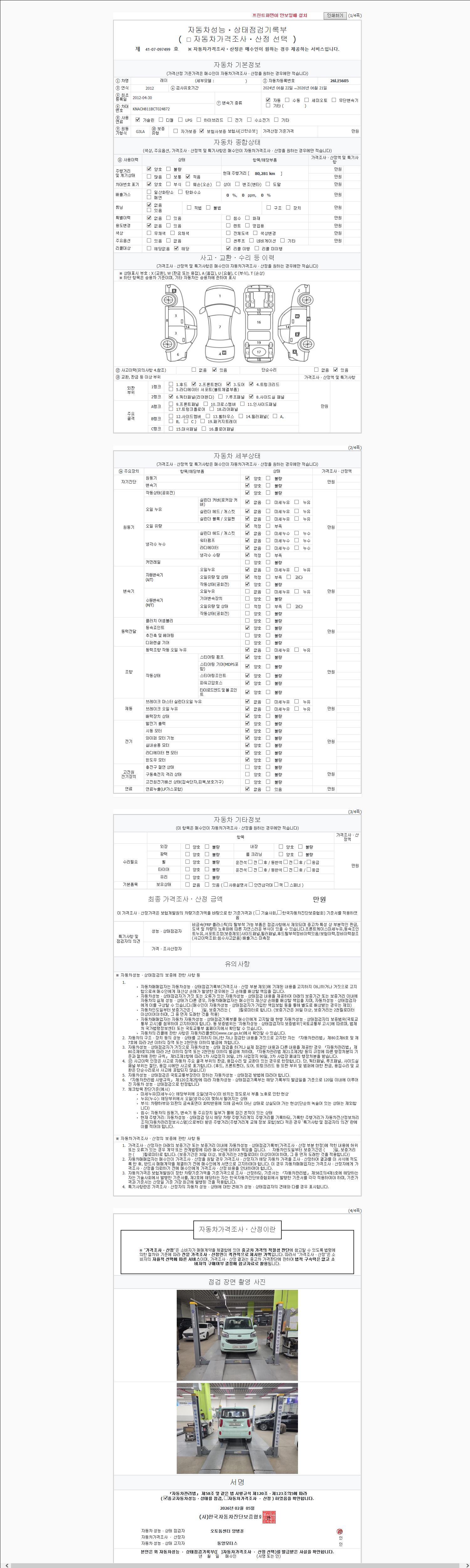 -중고자동차 매매업자를 통해 차량을 구입하실 경우 반드시 "중고자동차 성능, 상태점검 기록부"를 교뷰 받으셔야 하며, 매매업자는 반드시 의무 교부 하여야 압니다.