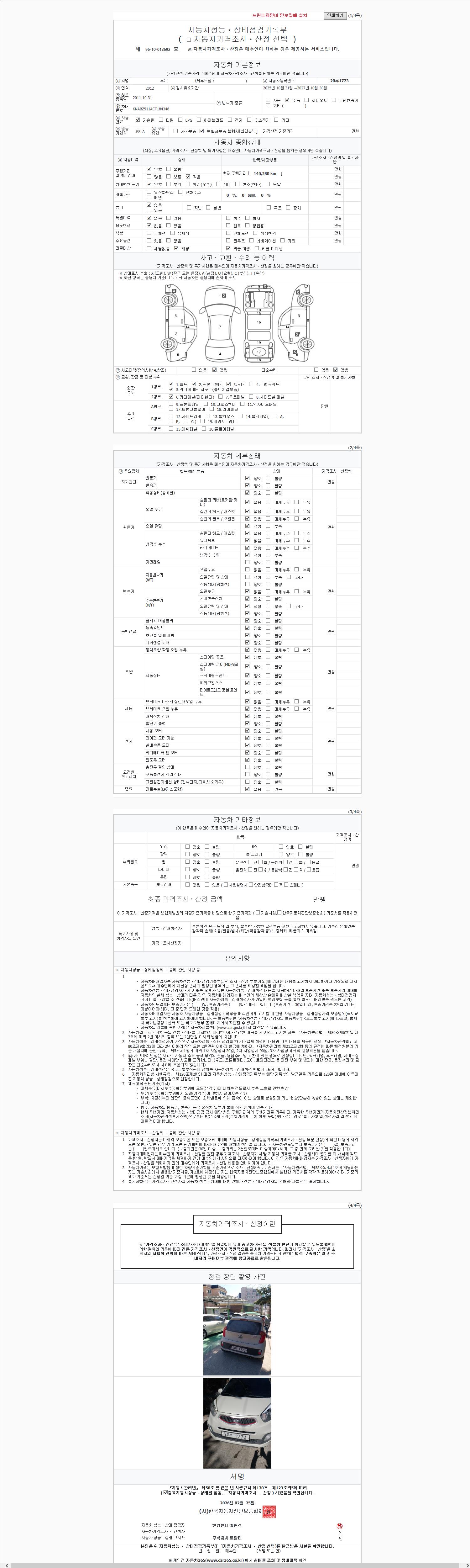 -중고자동차 매매업자를 통해 차량을 구입하실 경우 반드시 "중고자동차 성능, 상태점검 기록부"를 교뷰 받으셔야 하며, 매매업자는 반드시 의무 교부 하여야 압니다.