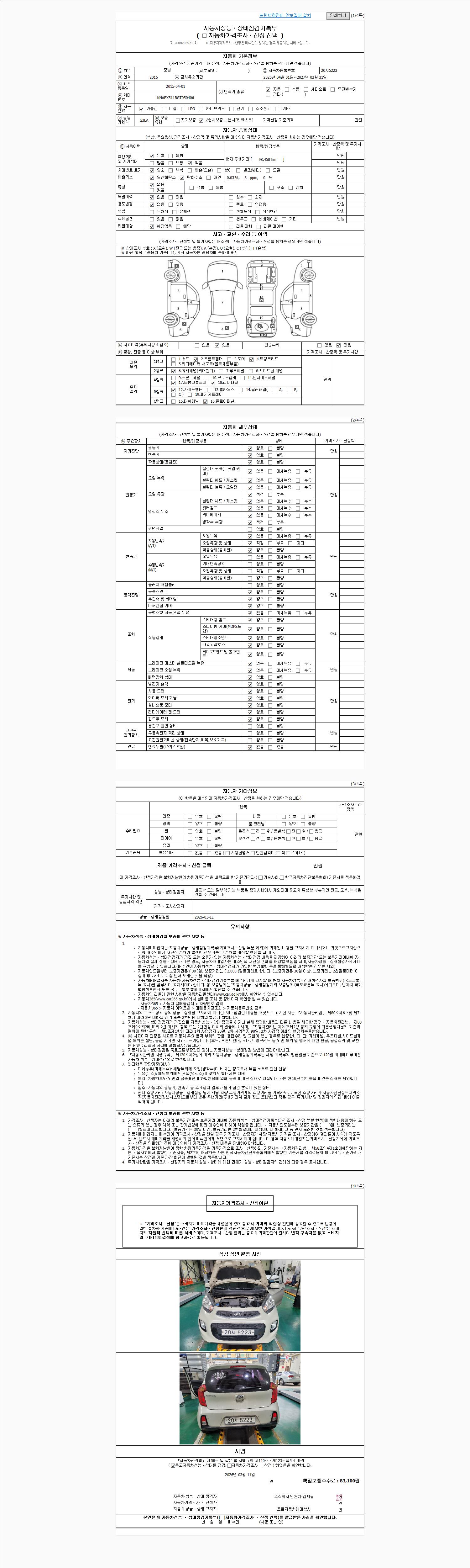 사고유무 성능기록부 참조 제시번호 제 2026012679 호