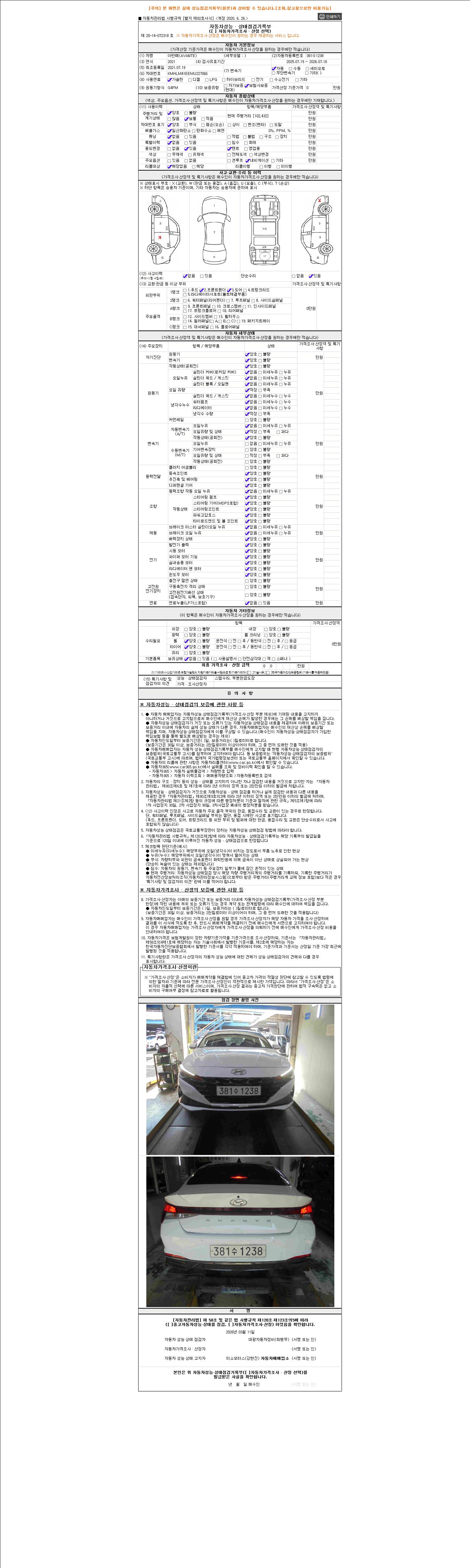 사고유무 성능기록부 참조 제시번호 제 2026026621 호