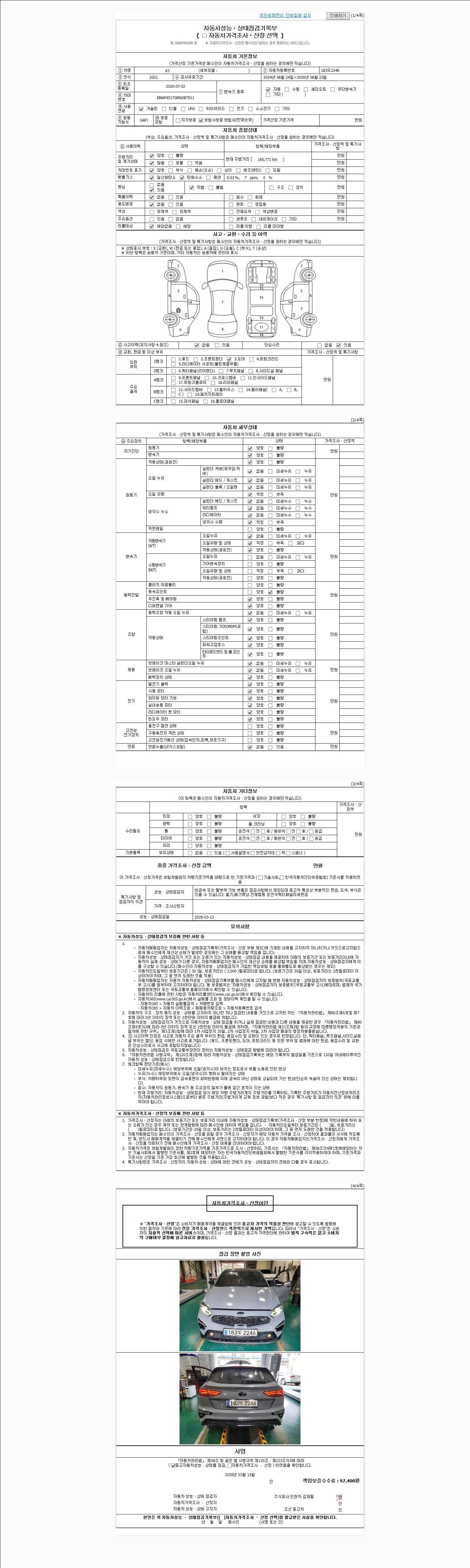 2. 차량 등록증이나 성능점검지 등을 상담자에게 요청및 확인하시고 사전에 미리 점검 하시기를 권유드립니다.