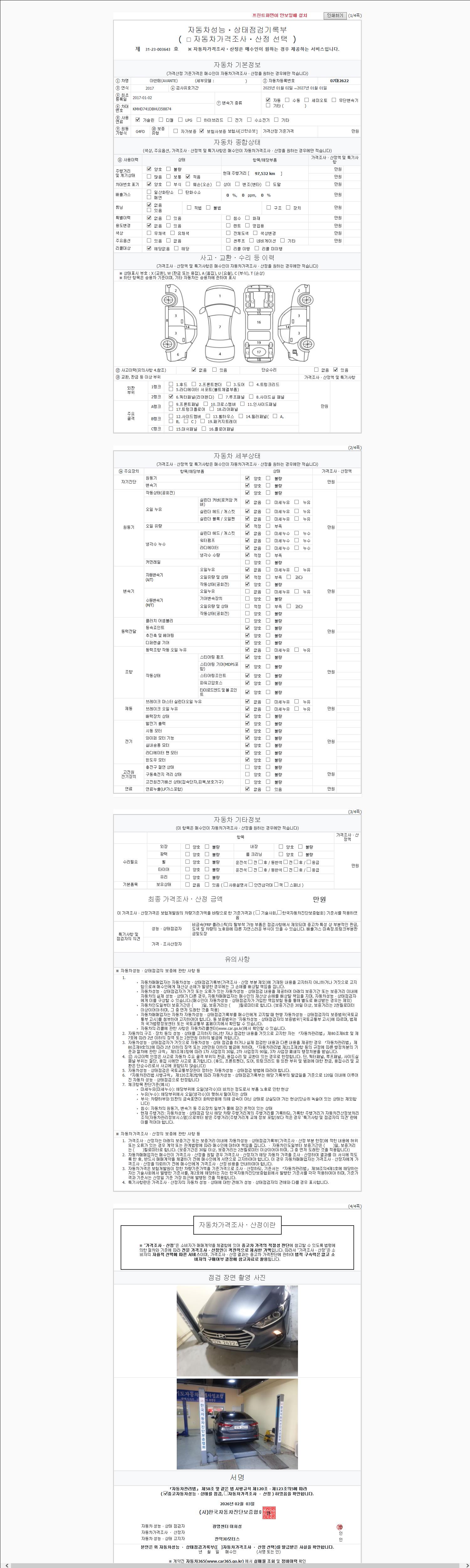 2. 차량 등록증이나 성능점검지 등을 상담자에게 요청및 확인하시고 사전에 미리 점검 하시기를 권유드립니다.