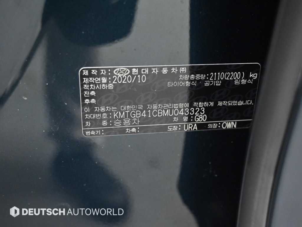 제네시스 G80 G80(RG3) (20년~) 2.5 가솔린 터보 2WD |