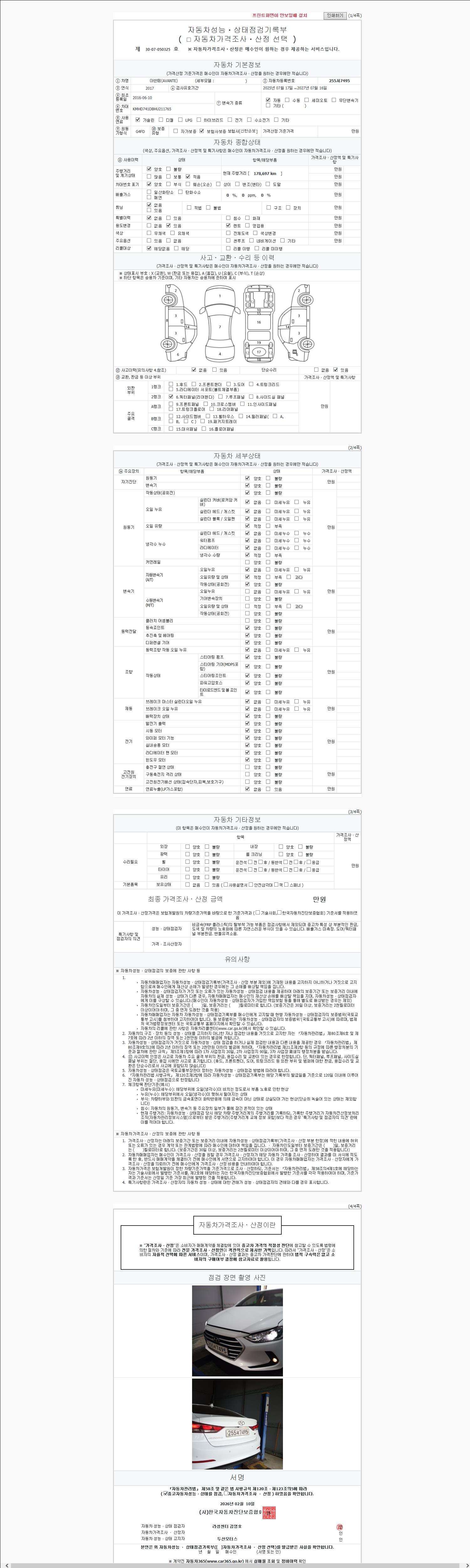 2. 차량 등록증이나 성능점검지 등을 상담자에게 요청및 확인하시고 사전에 미리 점검 하시기를 권유드립니다.