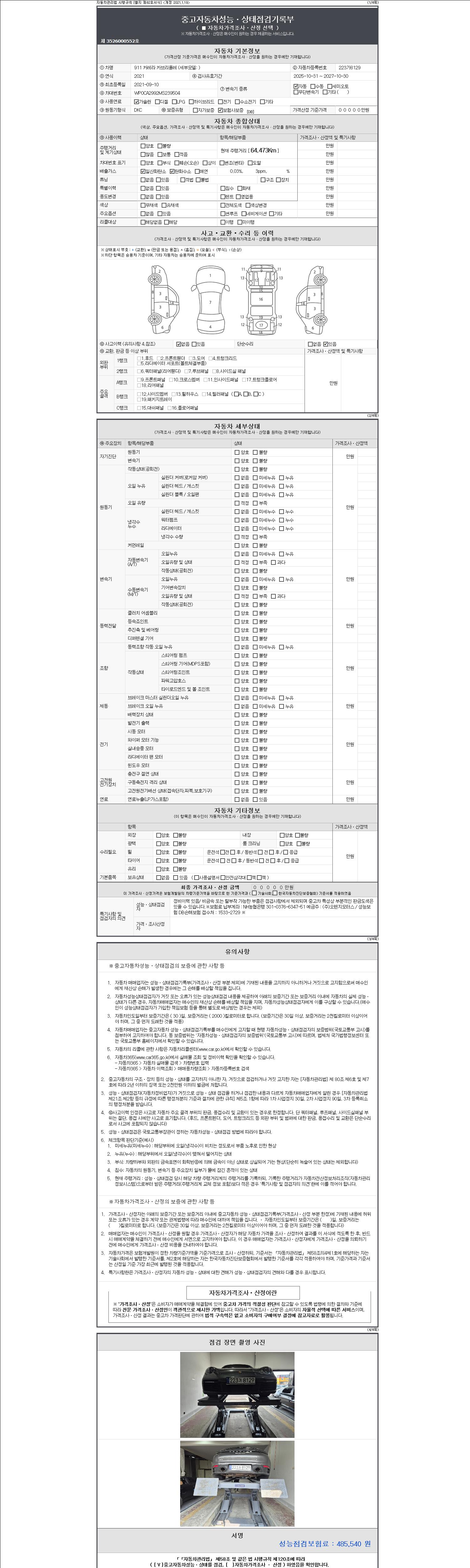 사고유무 성능기록부 참조 제시번호 제 2147483647 호