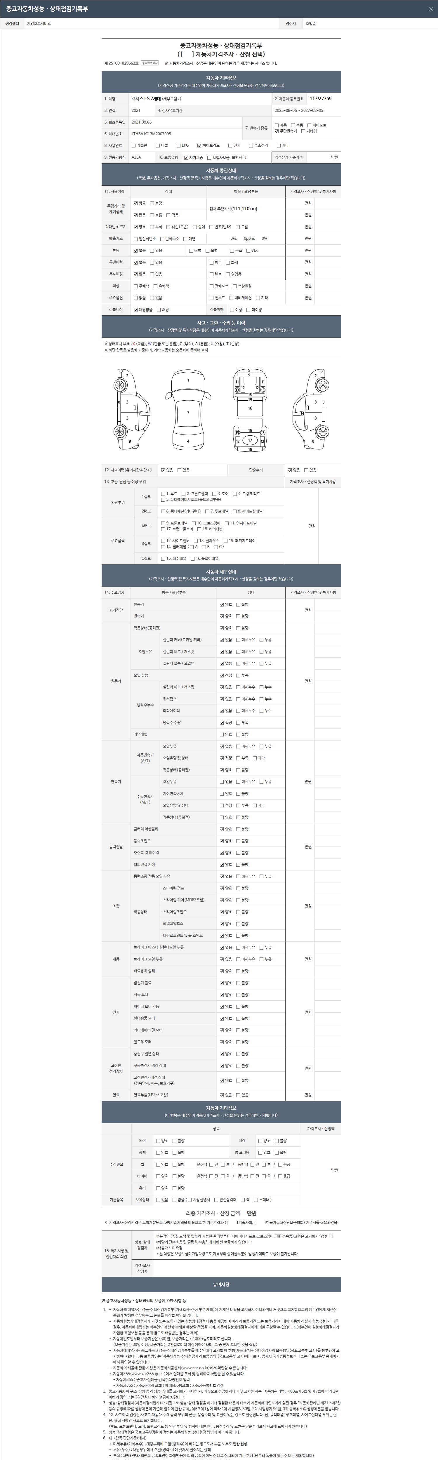 사고유무 성능기록부 참조 제시번호 제 2026008213 호