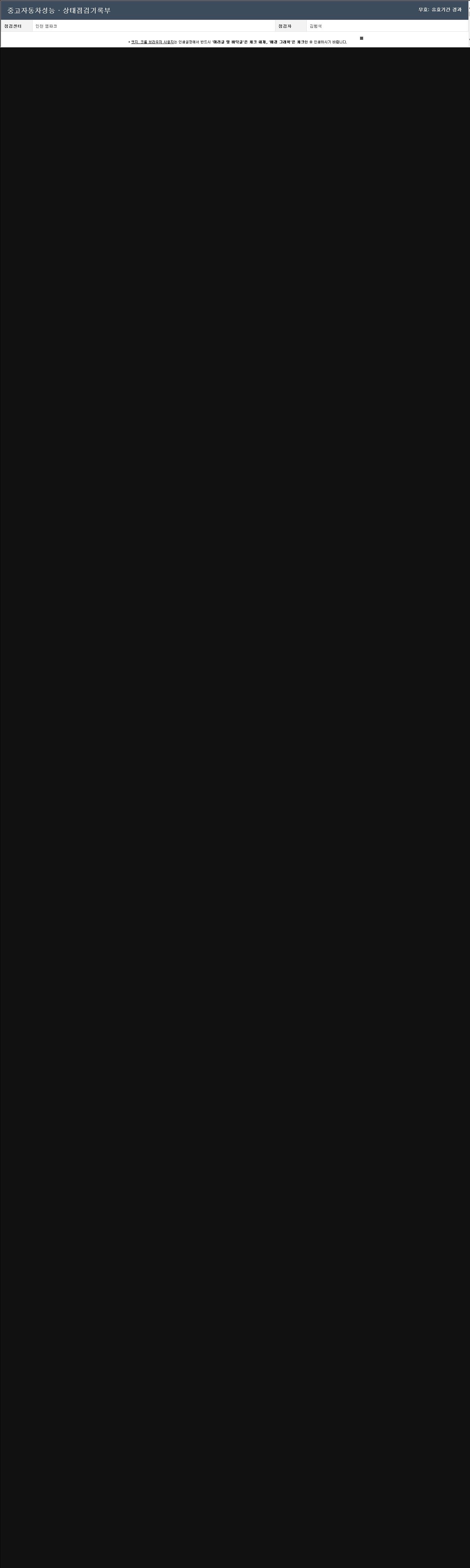 자동차관리법 시행규칙 제120조의 규정에 따라 별지 제 82호서식 《중고자동차 성능, 상태점검 기록부》를 발행한 성능, 상태점검자 및 매매자는 아래의 보증기간 또는 보증거리 이내의 중고자동차, 성능점검 기록부에 기재된 내용과 자동차의 실제 성능, 상태가 다른 경우 계약 또는 관계법령에 따라 매수인에 대하여 책임을 집니다.