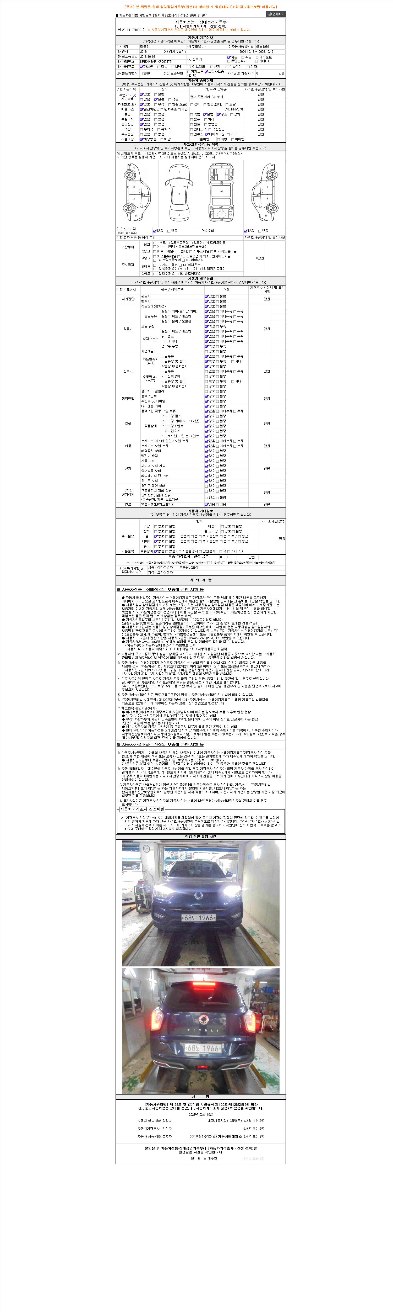 2. 차량 등록증이나 성능점검지 등을 상담자에게 요청및 확인하시고 사전에 미리 점검 하시기를 권유드립니다.