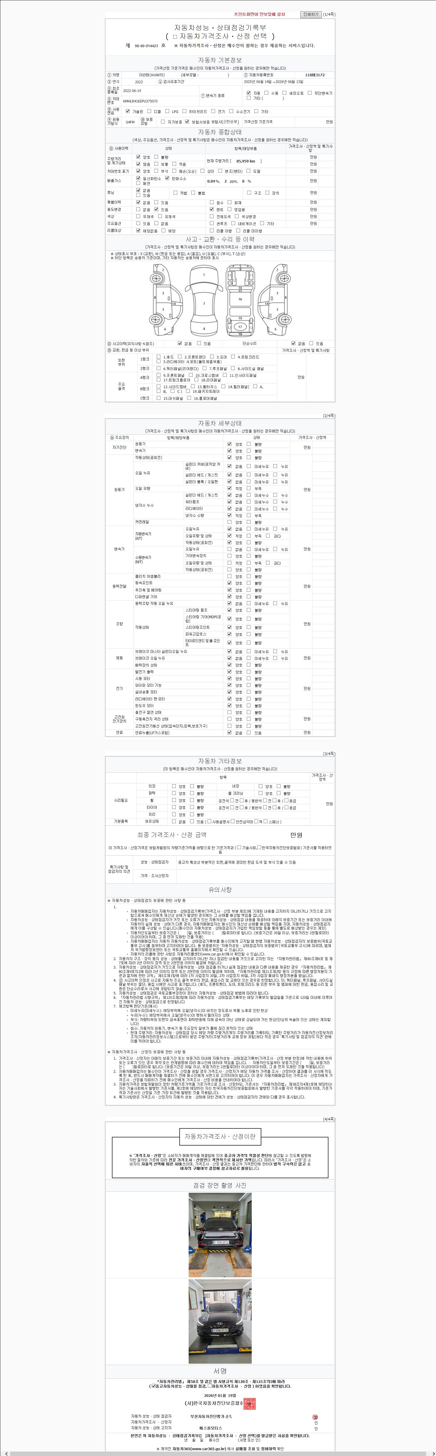 2. 차량 등록증이나 성능점검지 등을 상담자에게 요청및 확인하시고 사전에 미리 점검 하시기를 권유드립니다.