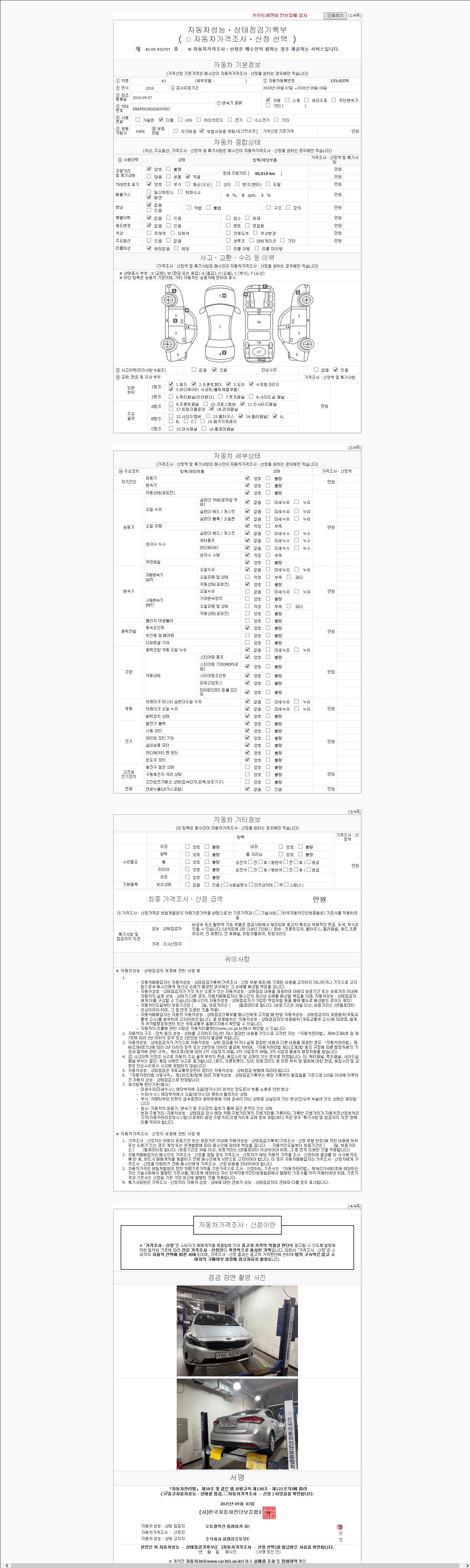 2. 차량 등록증이나 성능점검지 등을 상담자에게 요청및 확인하시고 사전에 미리 점검 하시기를 권유드립니다.
