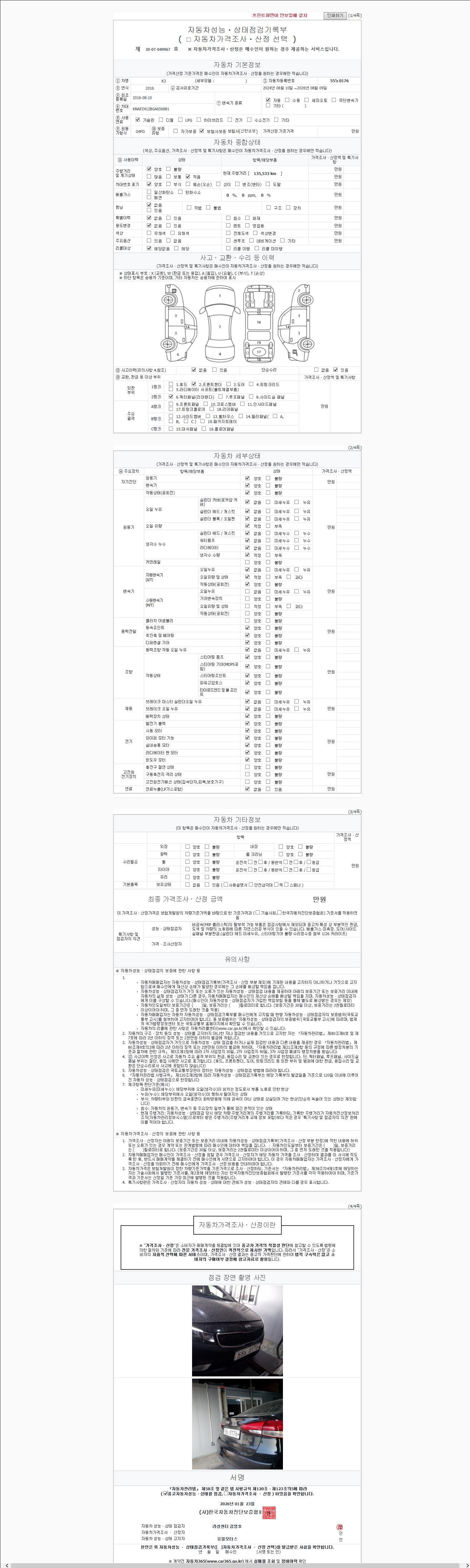 2. 차량 등록증이나 성능점검지 등을 상담자에게 요청및 확인하시고 사전에 미리 점검 하시기를 권유드립니다.