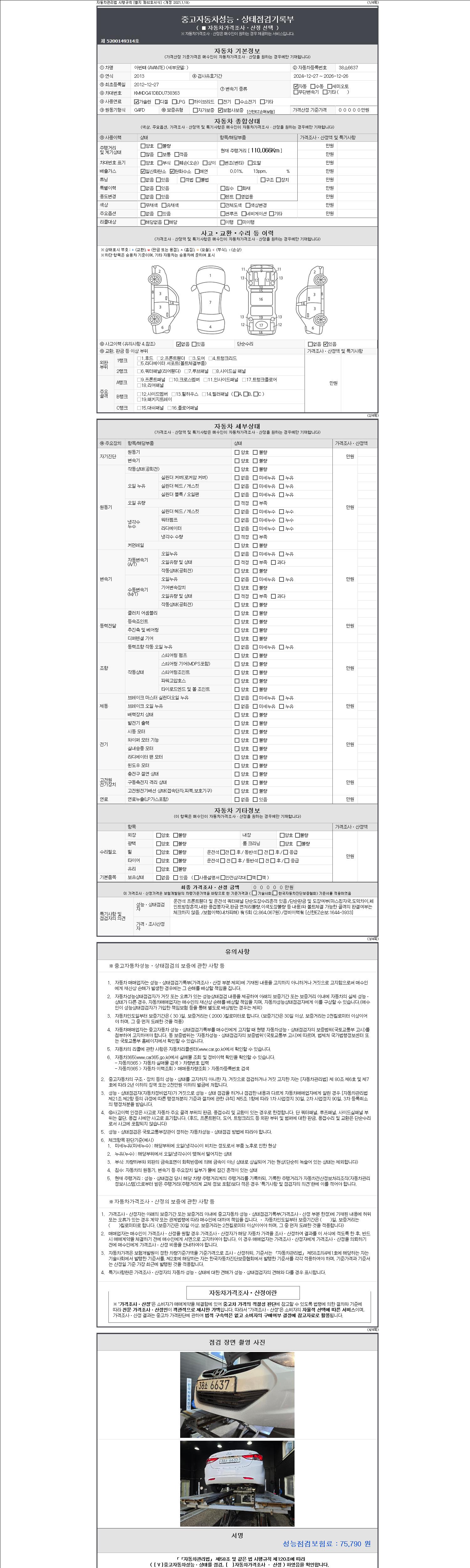 2. 차량 등록증이나 성능점검지 등을 상담자에게 요청및 확인하시고 사전에 미리 점검 하시기를 권유드립니다.
