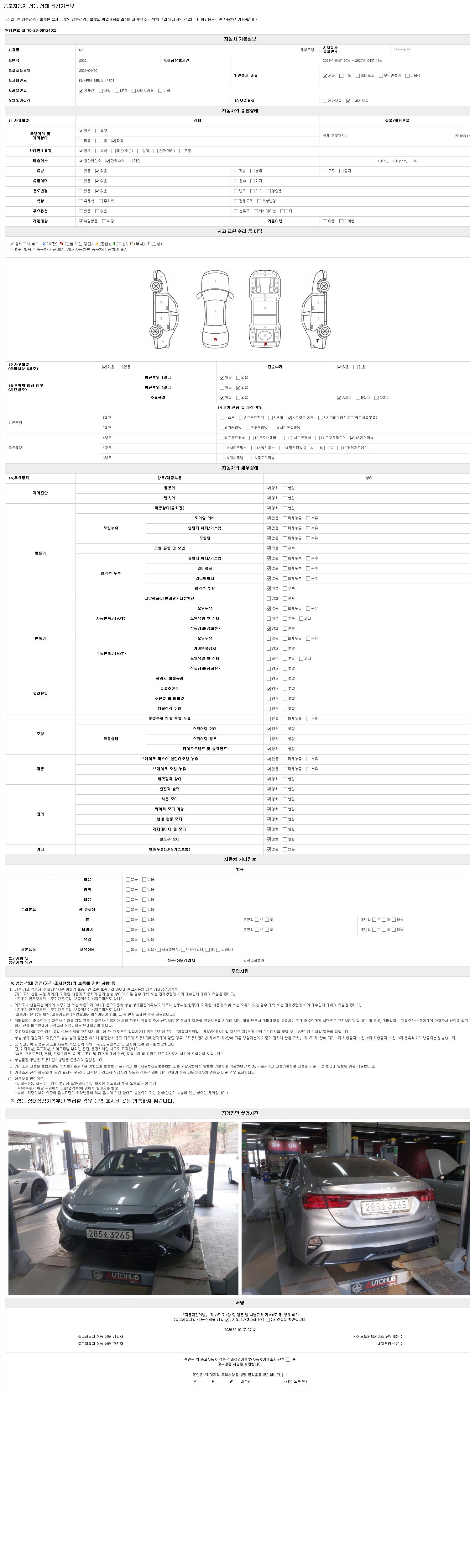 2. 차량 등록증이나 성능점검지 등을 상담자에게 요청및 확인하시고 사전에 미리 점검 하시기를 권유드립니다.