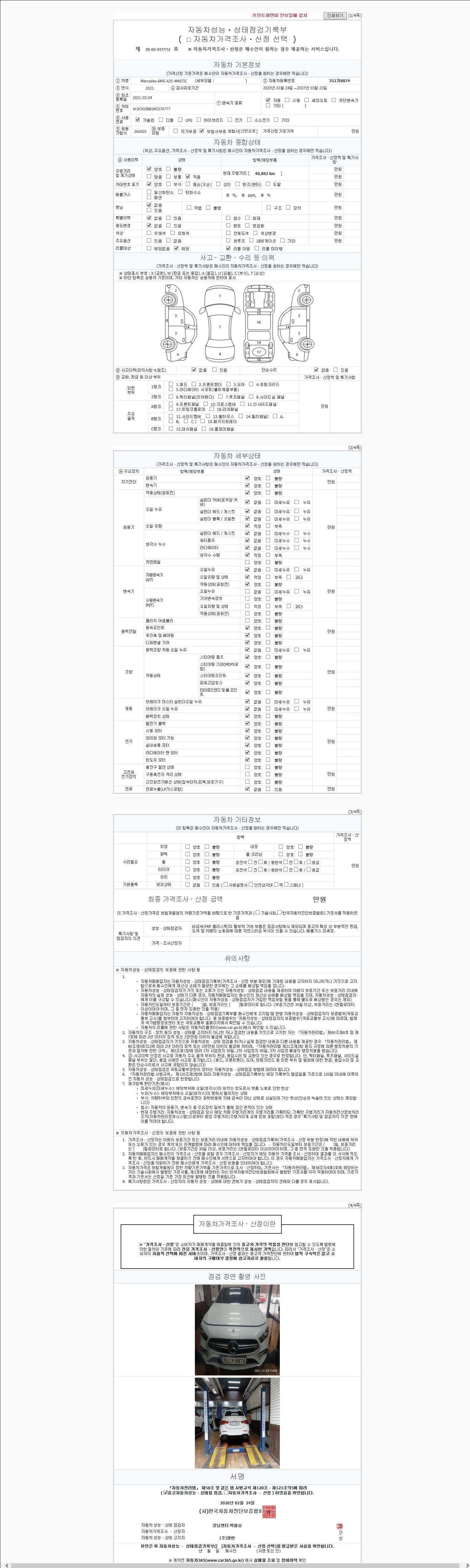 사고유무 성능기록부 참조 제시번호 제 2026029440 호