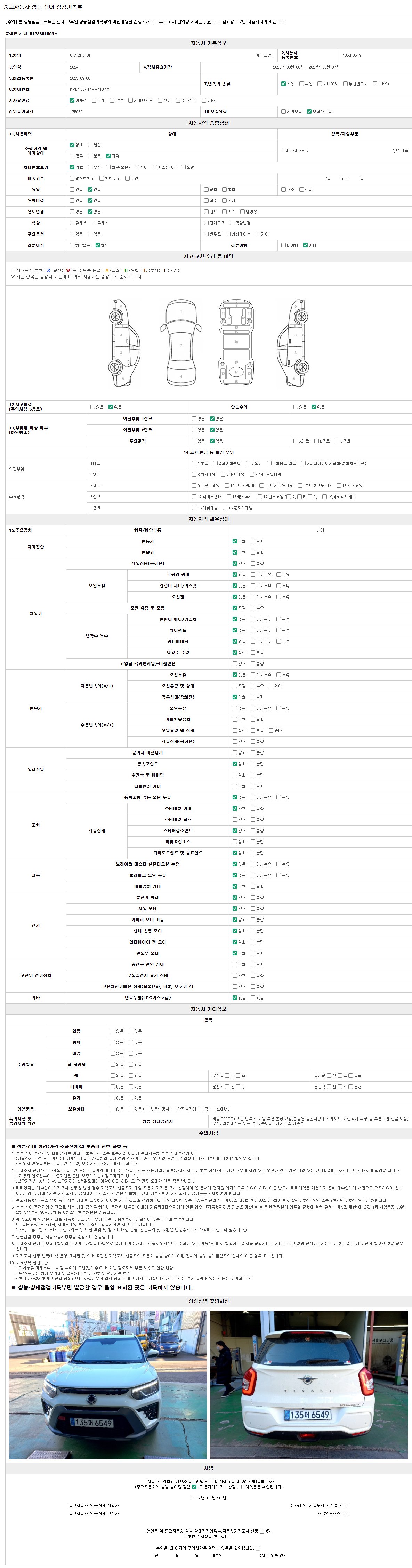 2. 차량 등록증이나 성능점검지 등을 상담자에게 요청및 확인하시고 사전에 미리 점검 하시기를 권유드립니다.