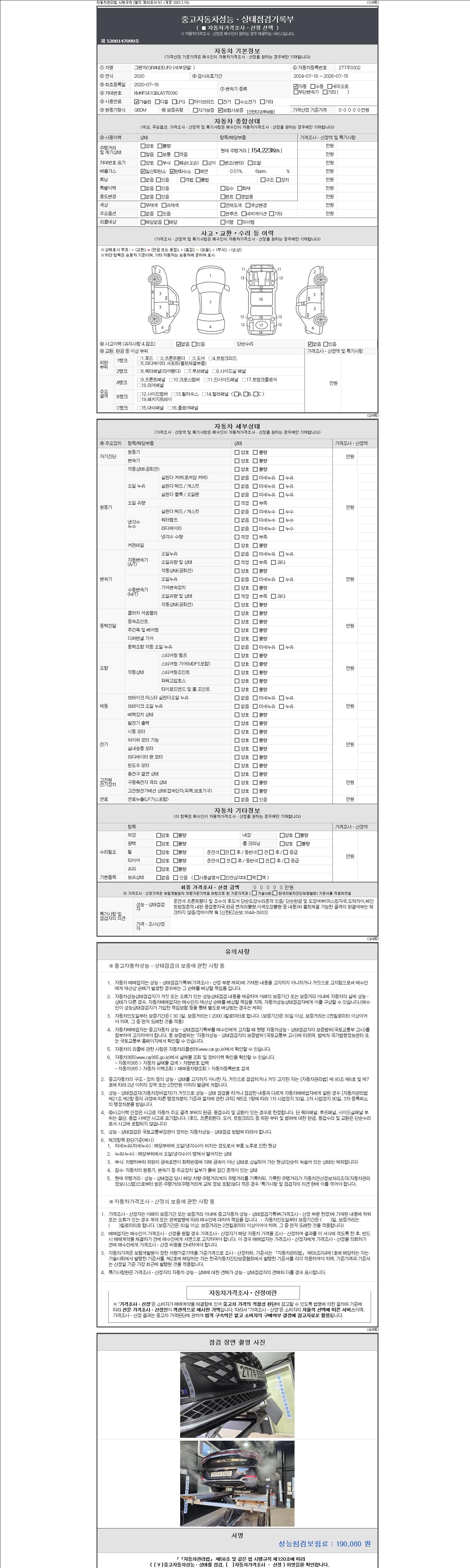 2. 차량 등록증이나 성능점검지 등을 상담자에게 요청및 확인하시고 사전에 미리 점검 하시기를 권유드립니다.