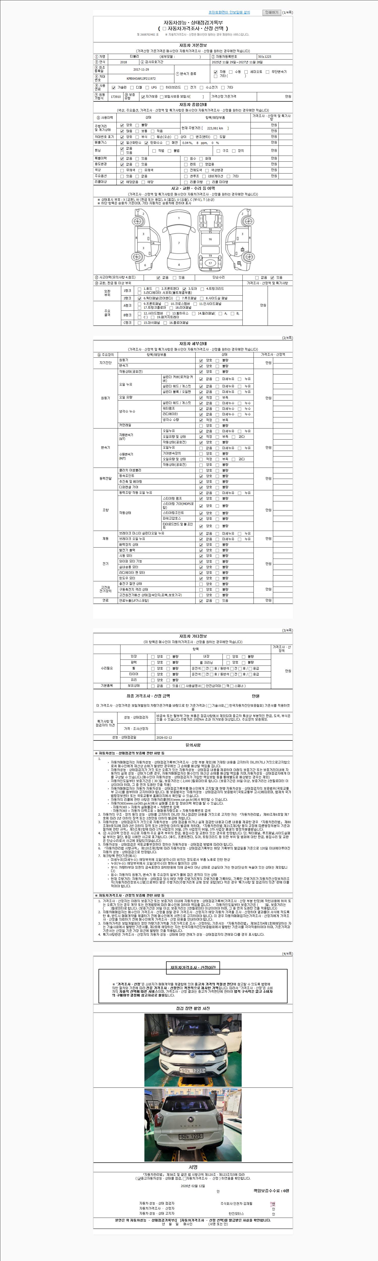-중고자동차 매매업자를 통해 차량을 구입하실 경우 반드시 "중고자동차 성능, 상태점검 기록부"를 교뷰 받으셔야 하며, 매매업자는 반드시 의무 교부 하여야 압니다.