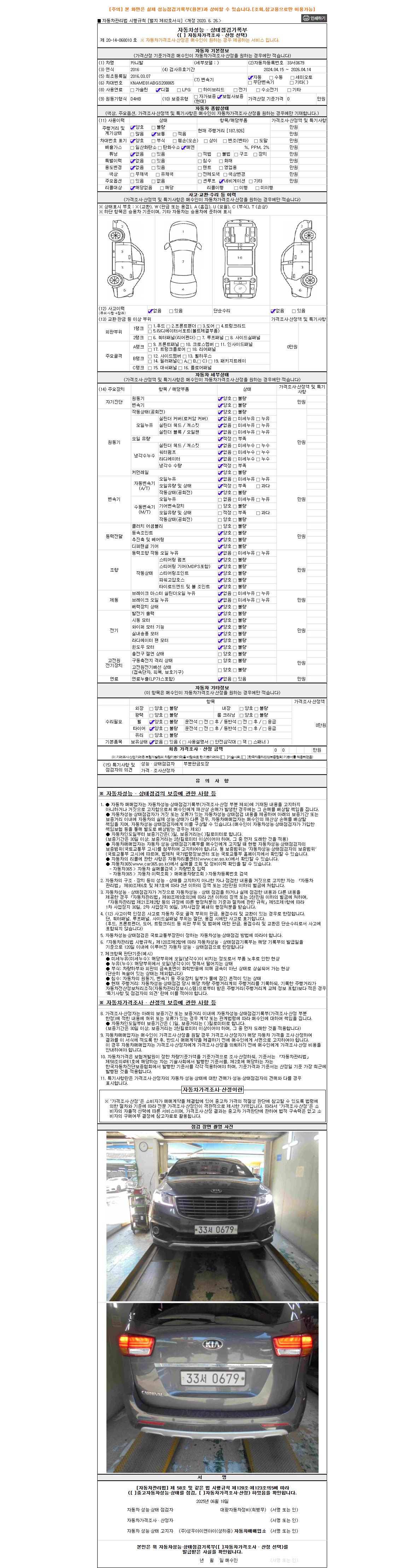 2. 차량 등록증이나 성능점검지 등을 상담자에게 요청및 확인하시고 사전에 미리 점검 하시기를 권유드립니다.